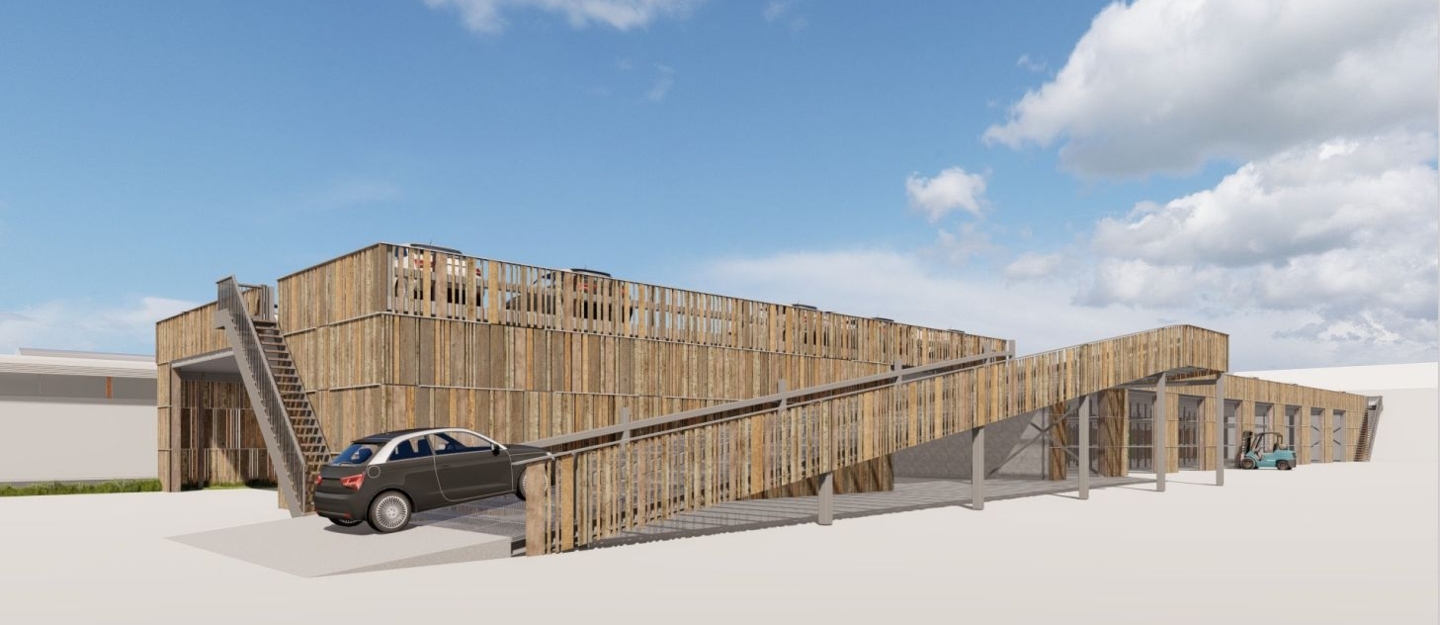 Dit najaar hebben wij voor onze opdrachtgever De Vries en Verburg uit Stolwijk een duurzame en circulaire parkeervoorziening mogen realiseren! Dit project heeft niet alleen een heel mooi ontwerp, maar ook een heel verhaal! Zo zijn bijvoorbeeld de houten gevelpanelen gemaakt door mensen met een afstand tot de arbeidsmarkt.
